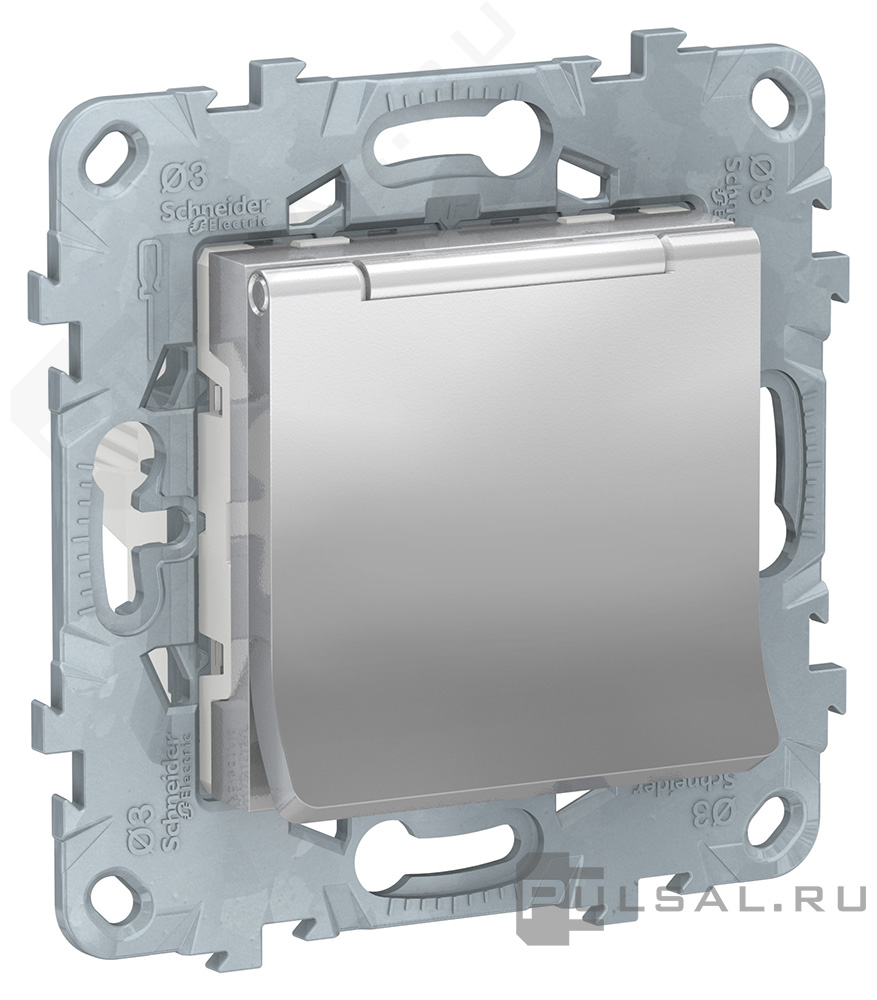 Розетка Unica New Pure, Unica New Studio, со шторками, с крышкой, с заземлением, одинарная, винтовые клеммы, цвет - алюминий