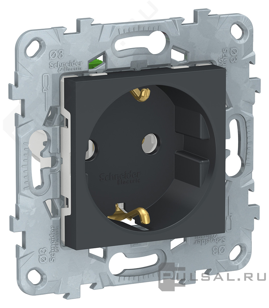 Розетка (безвинтовой зажим) Unica New Pure, Unica New Studio, без шторок, с заземлением, одинарная, безвинтовые клеммы, цвет - антрацит