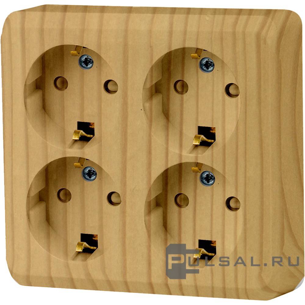 Розетка Этюд, без шторок, без заземления, четверная, винтовые клеммы, цвет - сосна