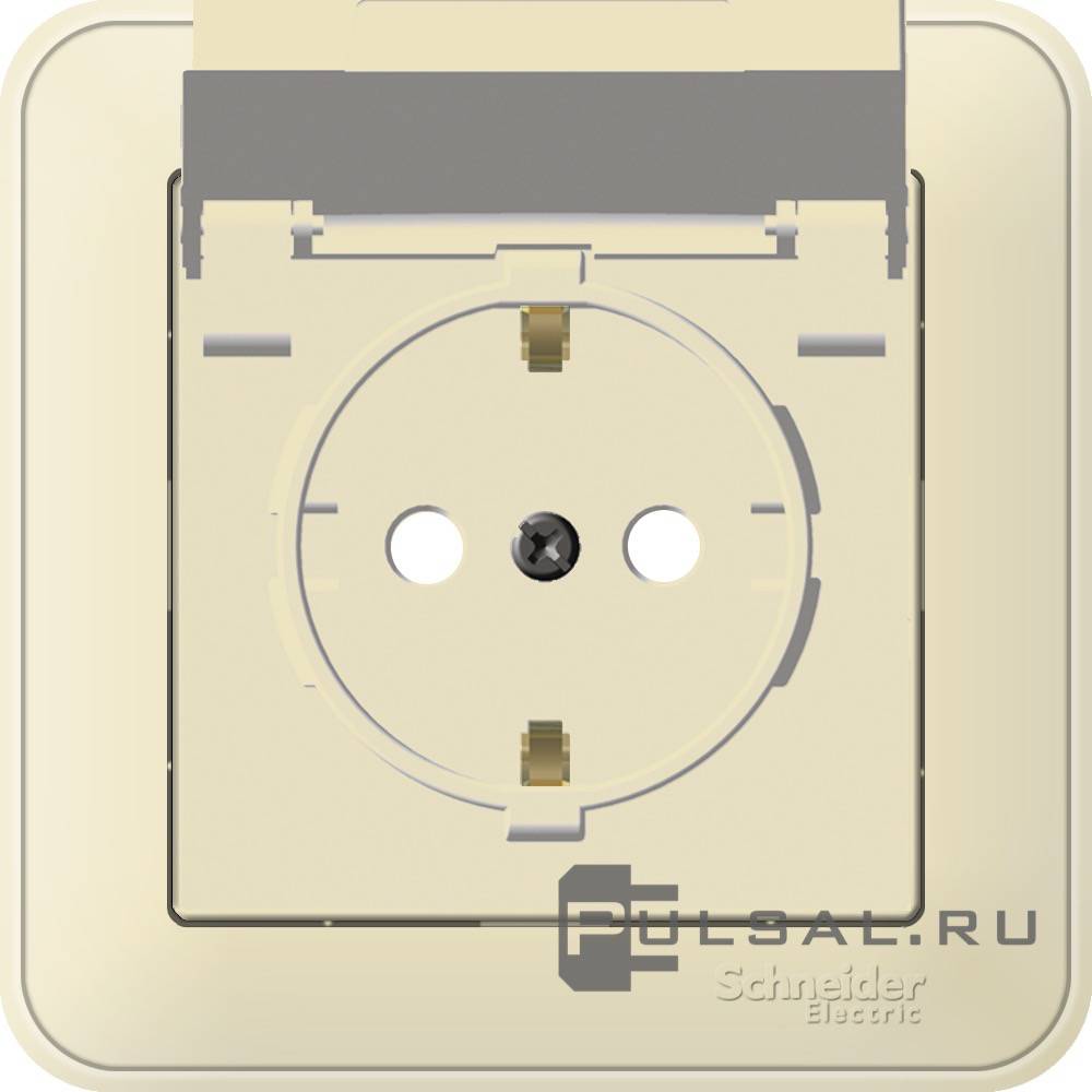 W59aqua, со шторками, с заземлением, одинарная, винтовые клеммы, цвет - слоновая кость