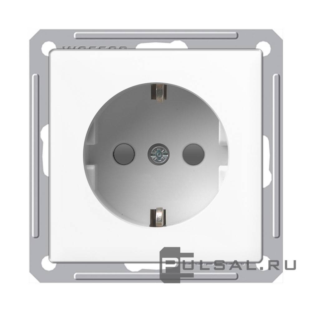 Розетка W59, без шторок, с заземлением, одинарная, винтовые клеммы, цвет - белый
