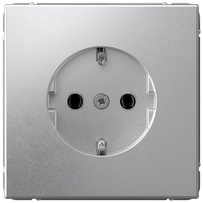 Розетка ArtGallery Aqua ArtGallery, ArtGallery Pure, со шторками, с крышкой, с заземлением, одинарная, винтовые клеммы, цвет - алюминий