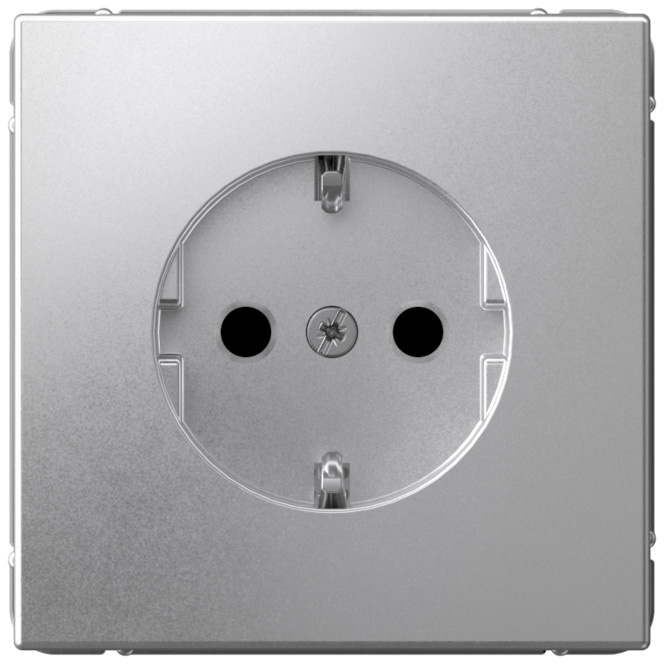 Розетка ArtGallery Aqua ArtGallery, ArtGallery Pure, со шторками, с крышкой, с заземлением, одинарная, винтовые клеммы, цвет - алюминий