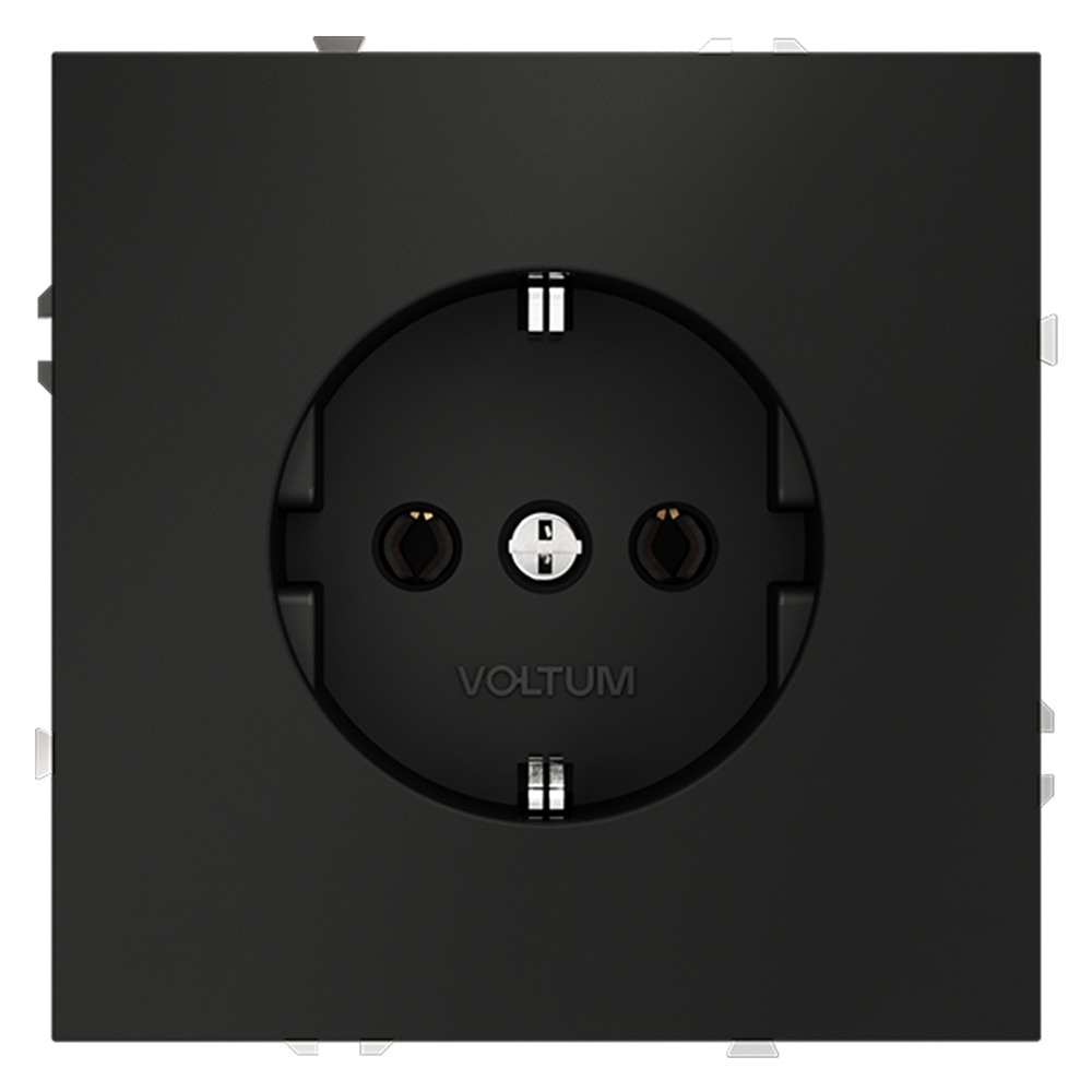 Розетка S70, со шторками, с заземлением, одинарная, безвинтовые клеммы, цвет - черный матовый