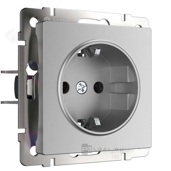 Умная розетка с Wi-Fi Elite, Alumax, Split, Slab, Senso, Minimir Home, Baguette, Acrylic, Platinum, Snabb, Stream, Flock, Stark, Fiore, Favorit, Diamant, Aluminium, Antik, Metallic, со шторками, с заземлением, одинарная, винтовые клеммы, цвет - серебряный
