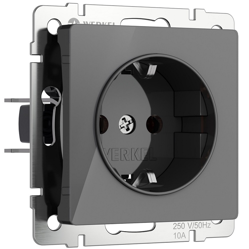 Розетка Alumax, Split, Slab, Senso, Baguette, Acrylic, Platinum, Elite, Snabb, Stream, Flock, Stark, Fiore, Favorit, Diamant, Aluminium, Antik, Metallic, со шторками, с заземлением, одинарная, винтовые клеммы, цвет - графит акрил