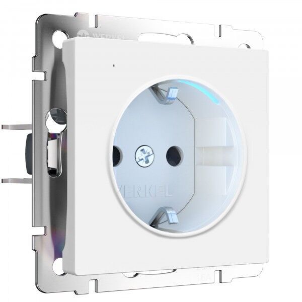 Розетка Alumax, Split, Slab, Senso, Baguette, Acrylic, Platinum, Elite, Snabb, Stream, Flock, Stark, Fiore, Favorit, Diamant, Aluminium, Antik, Metallic, без шторок, с заземлением, одинарная, винтовые клеммы, цвет - белый матовый