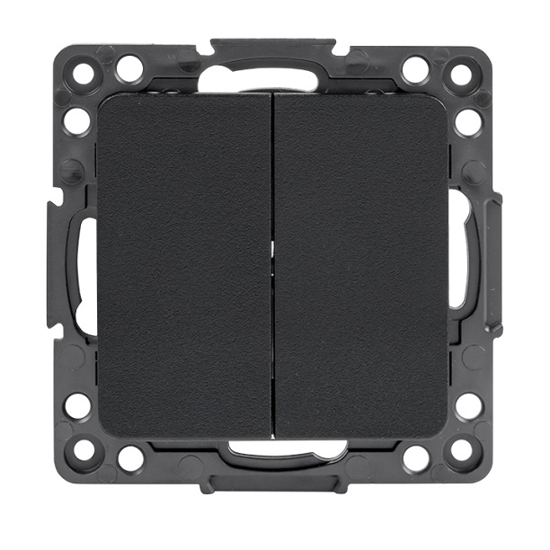 Переключатель Стокгольм, двухклавишный, без подсветки, цвет - черный