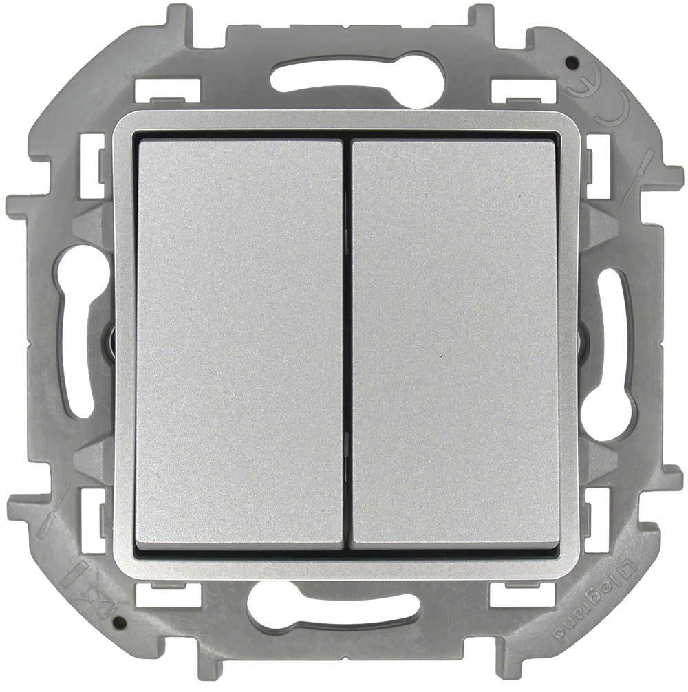 Переключатель (подсветка контурная) Inspiria, Mosaic, двухклавишный, с подсветкой, цвет - алюминий