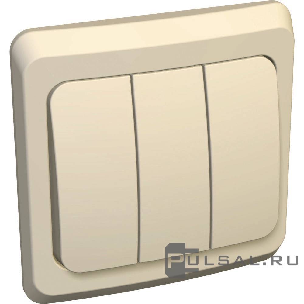 Выключатель с рамкой Этюд, трехклавишный, без подсветки, цвет - кремовый
