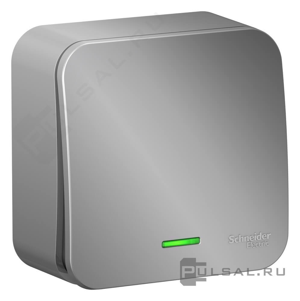 Выключатель 10А, с изолирующей пластиной Blanca, одноклавишный, без подсветки, цвет - алюминий