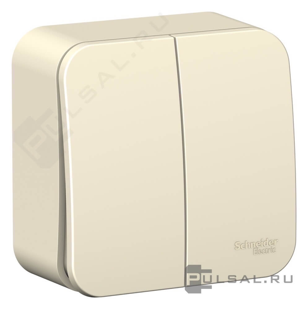Выключатель 10А, с изолирующей пластиной Blanca, двухклавишный, с подсветкой, цвет - молочный