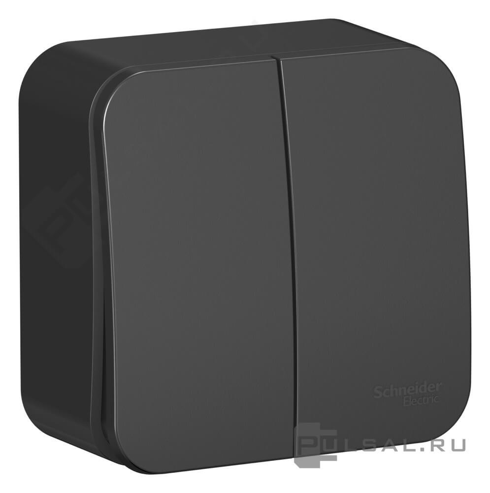 Выключатель 10А, с изолирующей пластиной Blanca, двухклавишный, с подсветкой, цвет - антрацит