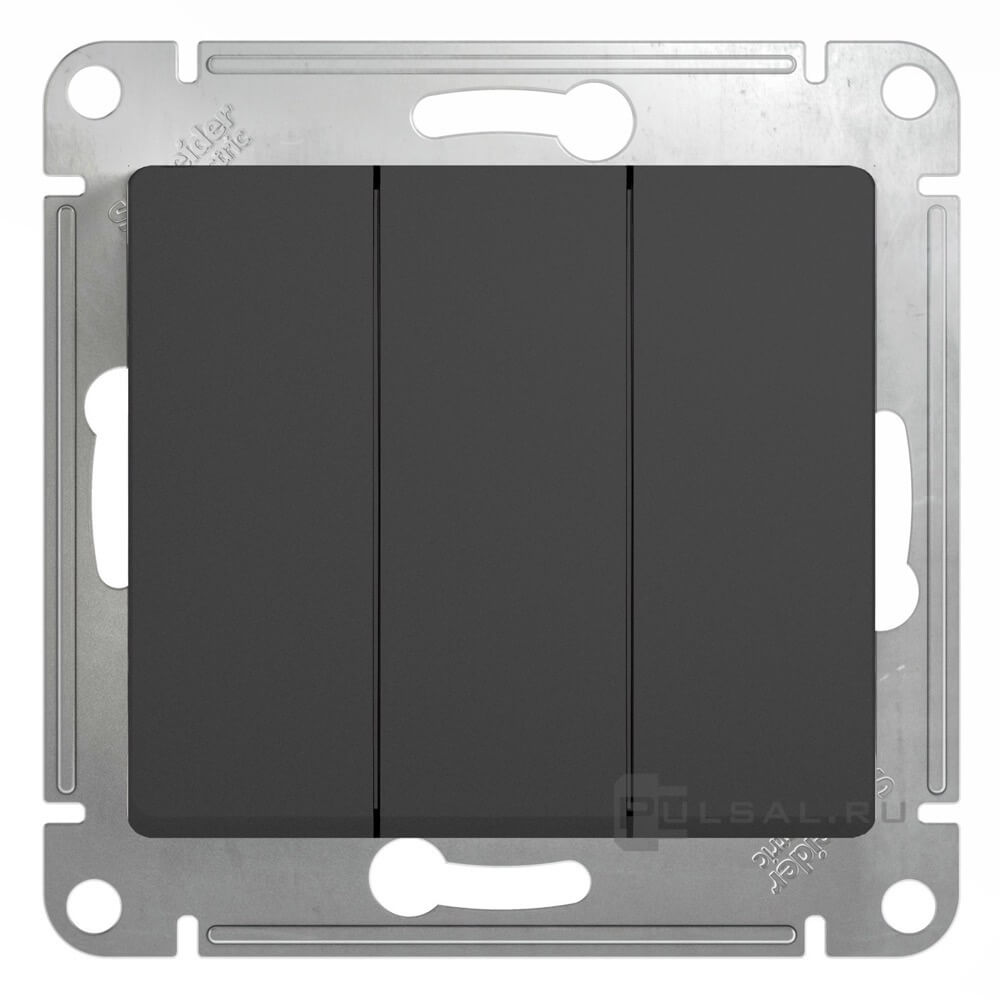 Выключатель Glossa, трехклавишный, без подсветки, цвет - антрацит