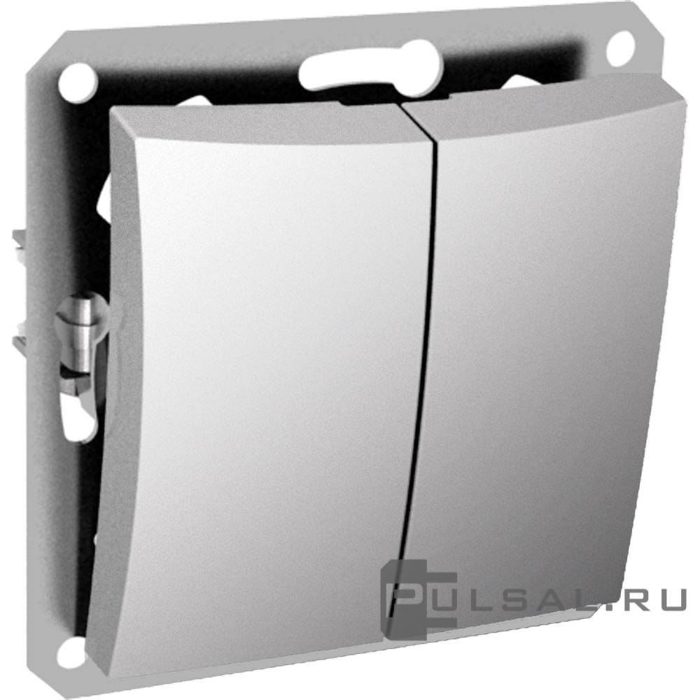 Дуэт, со шторками, с заземлением, двойная, винтовые клеммы, цвет - серебристый
