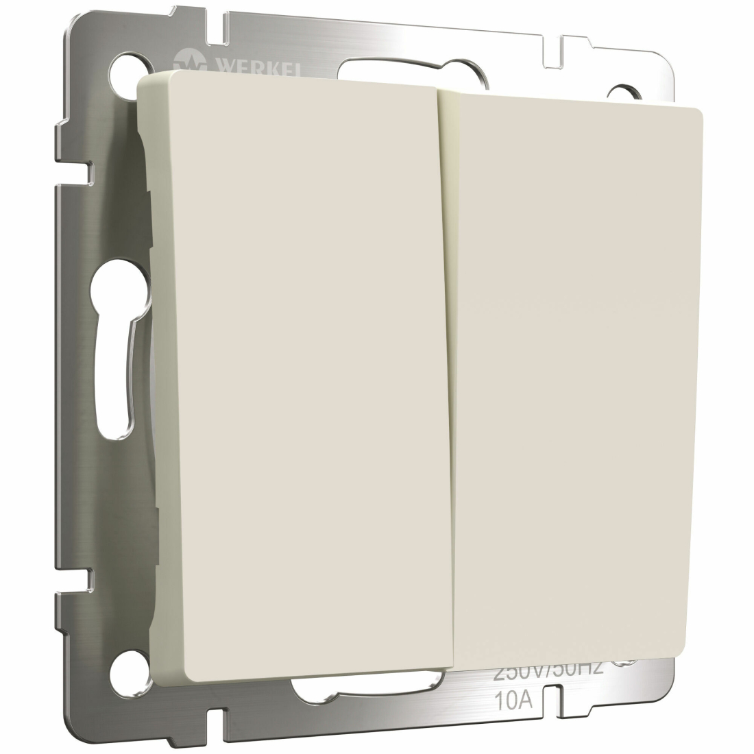 Переключатель Alumax, Split, Slab, Senso, Baguette, Acrylic, Platinum, Elite, Snabb, Stream, Flock, Stark, Fiore, Favorit, Diamant, Aluminium, Antik, Metallic, двухклавишный, без подсветки, цвет - айвори матовый