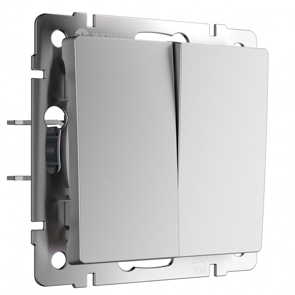 Переключатель Alumax, Split, Slab, Senso, Baguette, Acrylic, Platinum, Elite, Snabb, Stream, Flock, Stark, Fiore, Favorit, Diamant, Aluminium, Antik, Metallic, двухклавишный, без подсветки, цвет - серебряный матовый