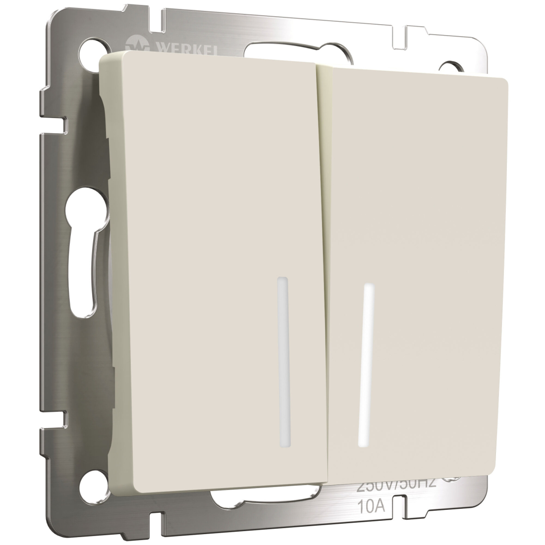 Выключатель Alumax, Split, Slab, Senso, Baguette, Acrylic, Platinum, Elite, Snabb, Stream, Flock, Stark, Fiore, Favorit, Diamant, Aluminium, Antik, Metallic, двухклавишный, с подсветкой, цвет - айвори матовый