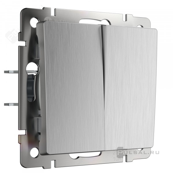 Переключатель Alumax, Split, Slab, Senso, Baguette, Acrylic, Platinum, Elite, Snabb, Stream, Flock, Stark, Fiore, Favorit, Diamant, Aluminium, Antik, Metallic, двухклавишный, без подсветки, цвет - серебряный рифленый