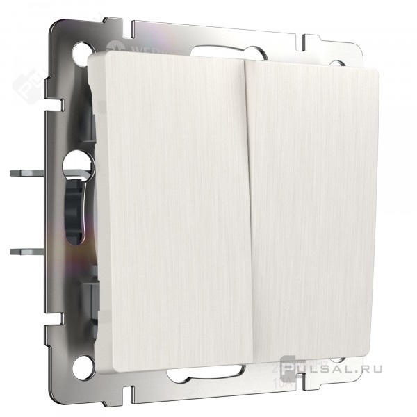 Переключатель Alumax, Split, Slab, Senso, Baguette, Acrylic, Platinum, Elite, Snabb, Stream, Flock, Stark, Fiore, Favorit, Diamant, Aluminium, Antik, Metallic, двухклавишный, без подсветки, цвет - перламутр рифленый