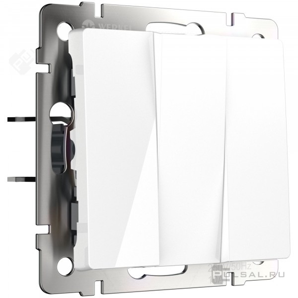 Выключатель Alumax, Split, Slab, Senso, Baguette, Acrylic, Platinum, Elite, Snabb, Stream, Flock, Stark, Fiore, Favorit, Diamant, Aluminium, Antik, Metallic, трехклавишный, без подсветки, цвет - белый
