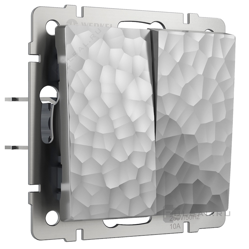 Переключатель Hammer, двухклавишный, без подсветки, цвет - серебряный
