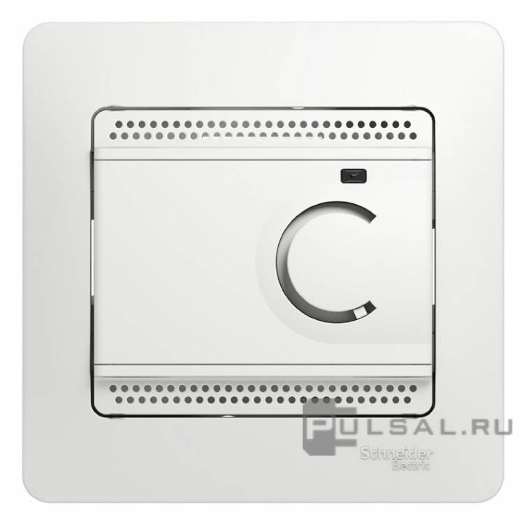 Терморегулятор 10А, НО-контакт, 230В Glossa, поворотный, датчик t° пола (внешний), без таймера, цвет - белый