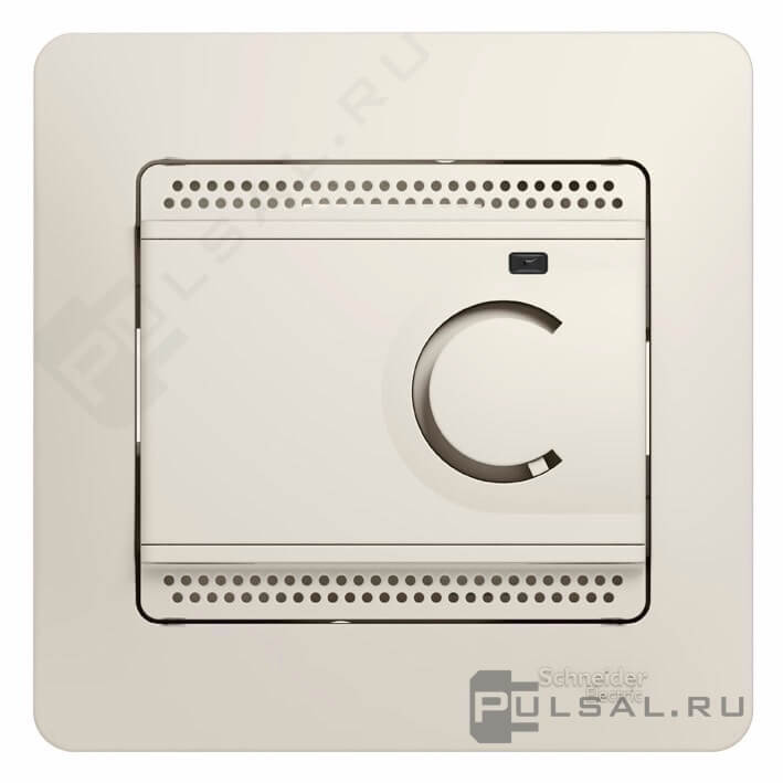 Терморегулятор 10А, НО-контакт, 230В Glossa, поворотный, датчик t° пола (внешний), без таймера, цвет - молочный