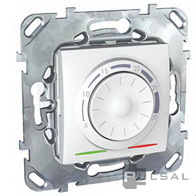 Терморегулятор 8А, перекидной контакт, 230В Unica Базовая, Unica Хамелеон, Unica Quadro, поворотный, датчик t° воздуха (встроенный), без таймера, цвет - белый