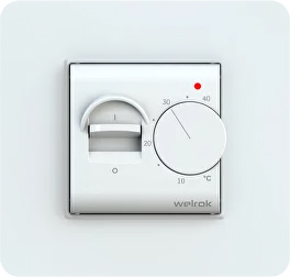 Welrok mex - механический терморегулятор с выключателем для систем теплого пола. Благодаря тумблеру вы можете отключить термостат, не меняя температуру.