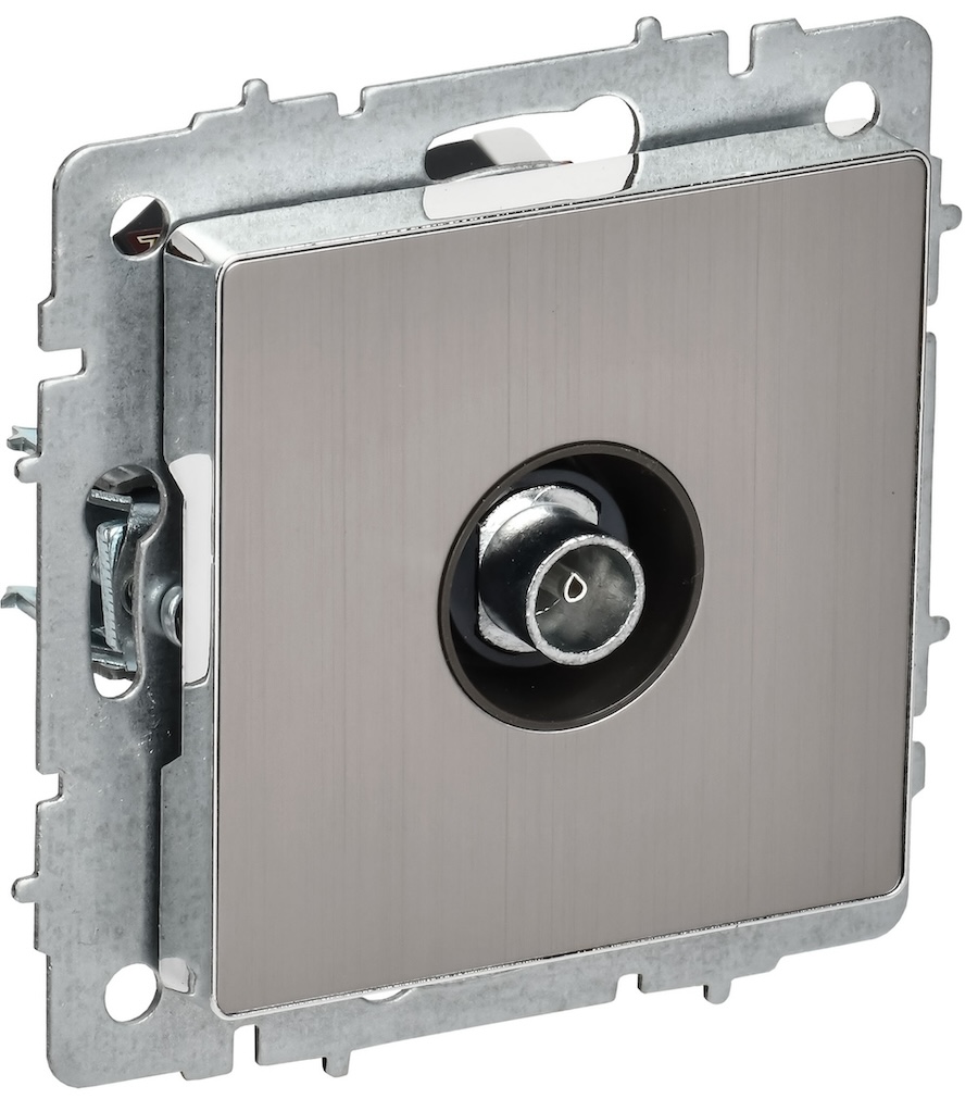 Розетка одиночная TV+RJ45 BRITE, телевизионная (TV), одинарная, цвет - никель