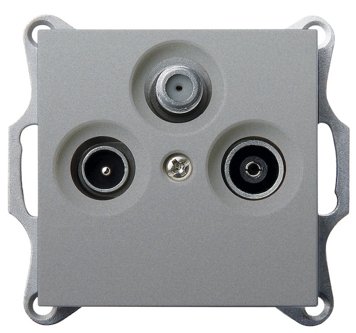 Розетка проходная G series, телевизионная (TV), спутниковая (SAT), радио (R), тройная, цвет - алюминий