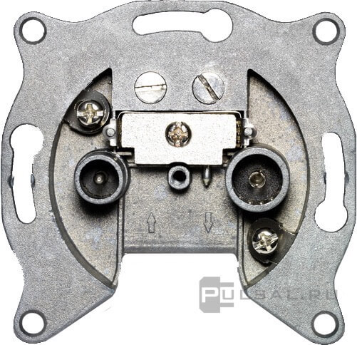Применяются, когда нужно установить несколько телевизоров. К такой TV-розетке подключают два кабеля: через один сигнал приходит, через второй — идет дальше к следующему телеприемнику.