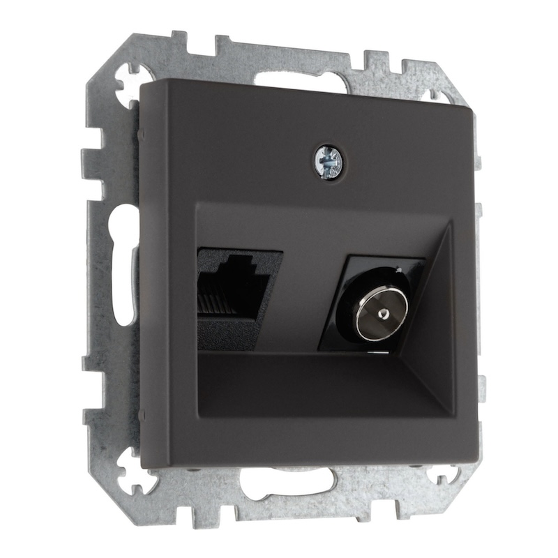 Розетка компьютерная RJ45 Cat.6 (UTP) Epsilon, Retro Liregus, одинарная, цвет - черно-коричневый матовый