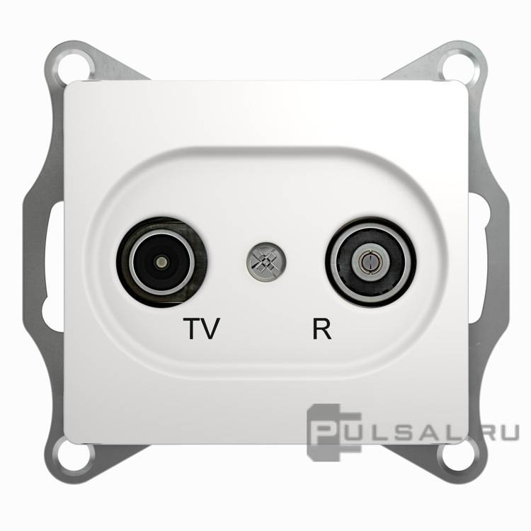 Розетка проходная 4 dB Glossa, телевизионная (TV), одинарная, цвет - белый