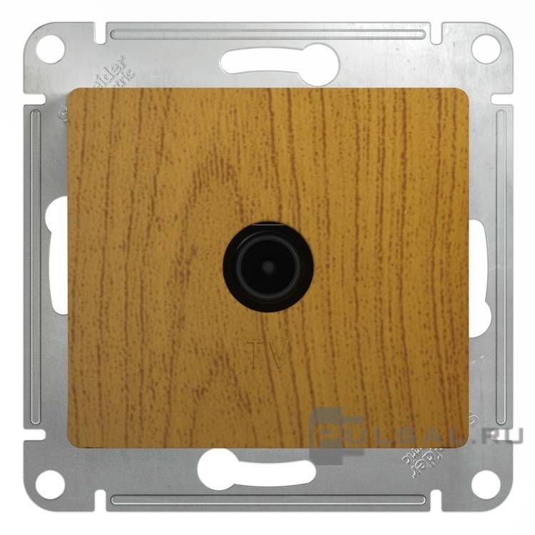 Розетка оконечная Glossa, телевизионная (TV), одинарная, цвет - дуб
