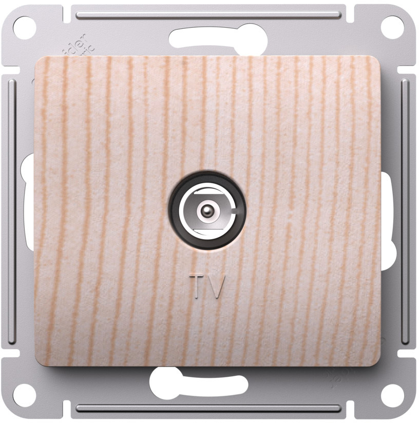 Розетка Glossa, без шторок, с заземлением, одинарная, винтовые клеммы, цвет - сосна