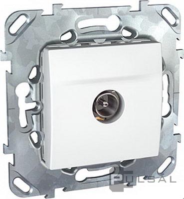 Розетка проходная 17 dB Unica Базовая, Unica Хамелеон, Unica Quadro, телевизионная (TV), радио (R), двойная, цвет - белый