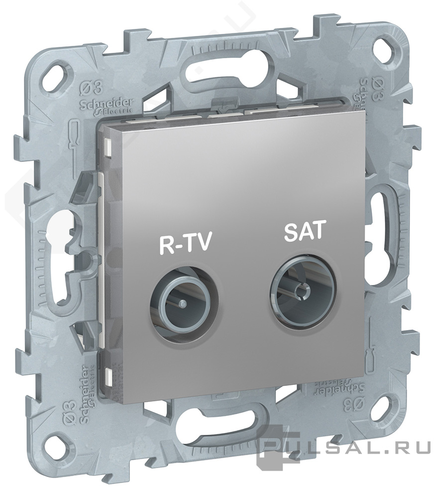 Розетка проходная Unica New Pure, Unica New Studio, телевизионная (TV), спутниковая (SAT), радио (R), двойная, цвет - алюминий