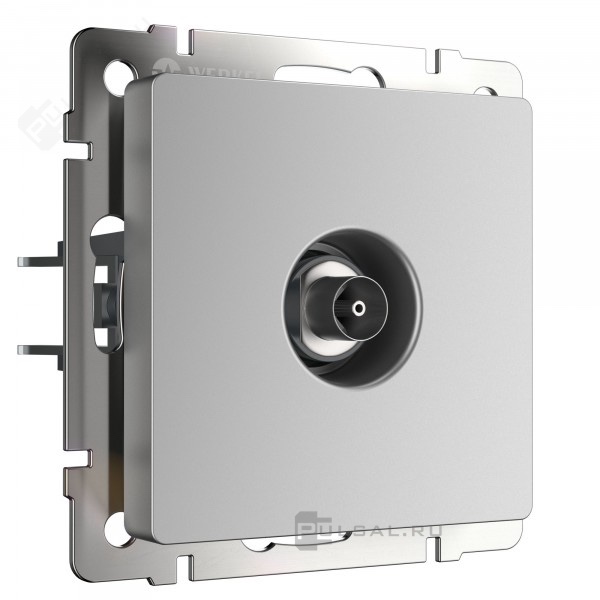 Розетка телефонная RJ11 Alumax, Split, Slab, Senso, Baguette, Acrylic, Platinum, Elite, Snabb, Stream, Flock, Stark, Fiore, Favorit, Diamant, Aluminium, Antik, Metallic, одинарная, цвет - серебряный
