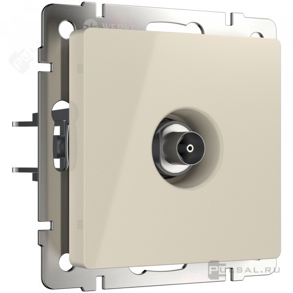 Розетка проходная Alumax, Split, Slab, Senso, Baguette, Acrylic, Platinum, Elite, Snabb, Stream, Flock, Stark, Fiore, Favorit, Diamant, Aluminium, Antik, Metallic, телевизионная (TV), одинарная, цвет - слоновая кость