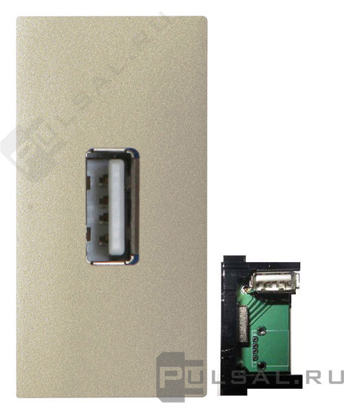 Zenit, USB type-A 5V, одинарная, цвет - шампань