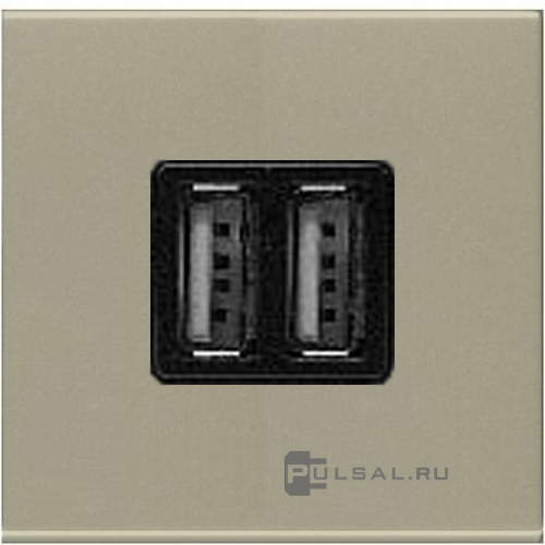 Зарядка USB-A+A 1.5А Zenit, USB type-A 5V, двойная, цвет - шампань