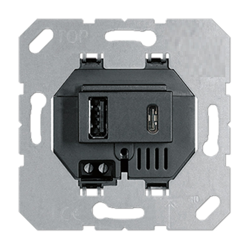 Механизм зарядки USB Type A+C, 32 Вт Универсальные устройства и механизмы, USB type-C 5V, USB type-A 5V, двойная, цвет - черный