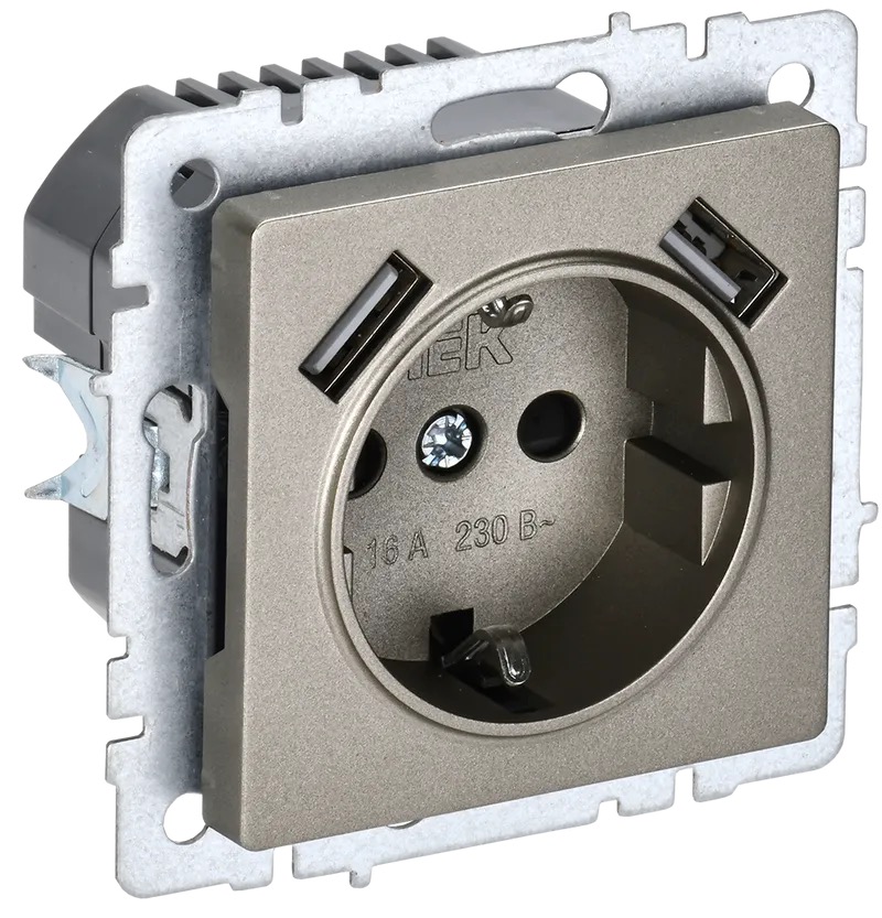 BRITE, со шторками, с заземлением, одинарная, винтовые клеммы, цвет - шампань