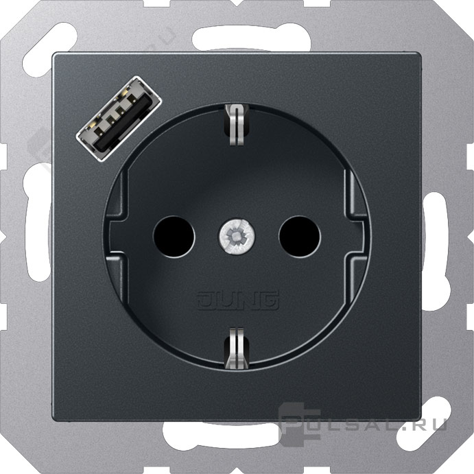 Розетка USB A с электрической розеткой A VIVA, A creation, A 550, A flow, AS 500, USB type-A 5V, Электр. с USB, одинарная, цвет - антрацит матовый