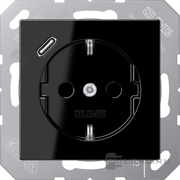Розетка USB C с электрической розеткой A VIVA, A creation, A 550, A flow, USB type-C 5V, Электр. с USB, одинарная, цвет - черный