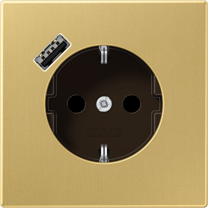 Розетка USB A с электрической розеткой LS 990, LS 1912, LS plus, LS ZERO, LS-design, FD-design, USB type-A 5V, Электр. с USB, одинарная, цвет - латунь классическая