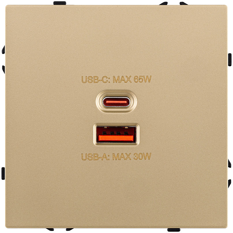 Розетка USB type-C + type-A, 3.0А 65Вт Eclipse, USB type-C 5V, USB type-A 5V, двойная, цвет - золотой