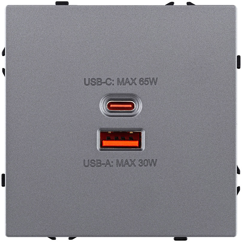 Розетка USB type-C + type-A, 3.0А 65Вт Eclipse, USB type-C 5V, USB type-A 5V, двойная, цвет - серый